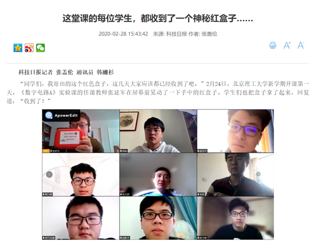 “同学们,我寄出的这个红色盒子,这几天大家应该都已经收到了吧。”2月24日,beat365在线唯一官网登录新学期开课第一天,《数字电路A》实验课的任课教师张延军在屏幕前晃动了一下手中的红盒子。学生们也把盒子拿了起来,回复道:“收到了!”