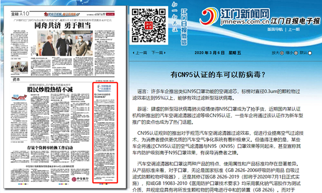 编辑:吴楠 审核:刘晓俏 阅读次数:原文标题:有CN95认证的车可以防病毒?