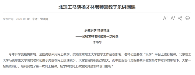 编辑:吴楠 审核:刘晓俏 阅读次数:原文标题:北理工马院杨才林老师寓教于乐讲网课