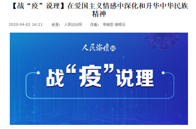 编辑:吴楠 审核:刘晓俏 阅读次数:原文标题:【战“疫”说理】在爱国主义情感中深化和升华中华民族精神