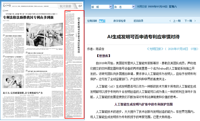 自2018年开始,美国密苏里州人工智能专家斯蒂芬·泰勒及其团队成员,声称他们提交的饮料固定器和信号设备的两项装置是一个名为Dabus的人工智能系统独立开发的,该研究团队向多国提出申请,要求承认人工智能作为发明人,且给予发明专利保护。这引发了全球监管部门、产业机构和学界的高度关注。