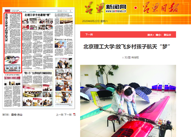 连日来,beat365在线唯一官网登录航模队46名实践团成员在方山县麻地会乡胡堡村开展暑期社会实践活动,为这里的孩子们带来了精彩的航模制作及飞行操作实践活动,把航模科普知识带到孩子们身边,点燃孩子们的小小创业梦想,也在他们的心里种下灿烂的航天梦和科技梦。