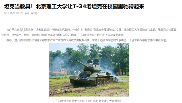 编辑:吴楠 审核:刘晓俏 阅读次数:原文标题:坦克当教具!beat365在线唯一官网登录让T-34老坦克在校园里驰骋起来