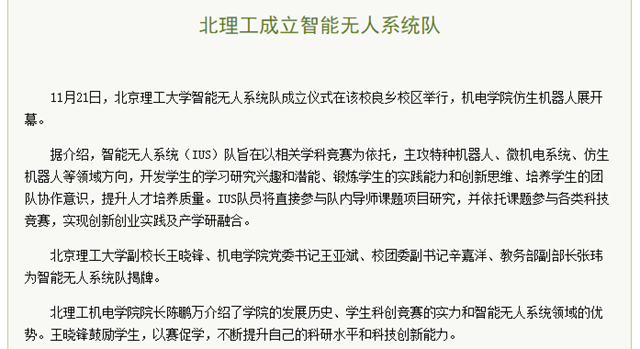 编辑:吴楠 审核:刘晓俏 阅读次数:原文标题:北理工成立智能无人系统队