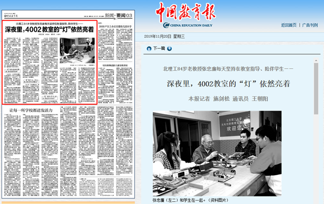 2016年,一篇《在北理工,有一盏灯叫“深夜十一点的4002”》的文章发表在学校新闻网上,短短时间点击量过万。张忠廉每天坚持在4002教室陪伴学生,10余年坚持这样一个既普通而又不凡的举动,令师生们敬佩。