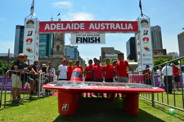 经过6天共计57小时的艰苦跋涉,“振发”号终于顺利抵达终点阿德莱德。他们全程共有1823公里完全依靠太阳能完成赛事,尤其是前两个分站段,都是自主完成赛事,没有依靠拖车。