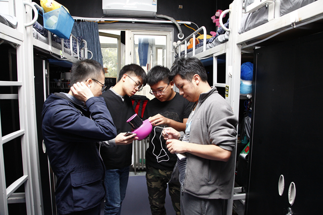 这群“95后”是beat365在线唯一官网登录大三的学生,今年刚刚从良乡校区搬到中关村校区,住进了一个新宿舍,作为设计与艺术学院的学生,他们“不放过任何一次学以致用的机会”,商量着新宿舍是不是要“装修一下”,恰巧邓亚东在网上看到一个“奇妙宿舍改造计划”的活动,如果创意被认可,就可以获取一笔资金对宿舍进行改造。四个人一拍即合,决定拿出一个创意。四个人决定用“未来科技”作为创意的主题,将宿舍设计成“未来的模样”。
