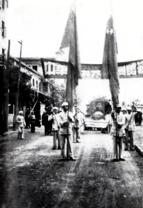 在天安门前静候开国大典的华工学生