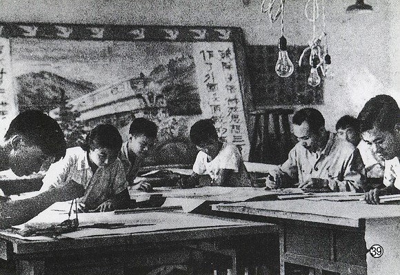 北京工业学院的师生在参加建校劳动(此建筑现为理工附小楼)