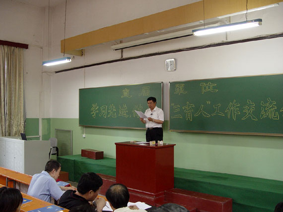 2005年6月16日下午直属单位党委在主楼241召开学习先进,做好“三育人”工作交流会。