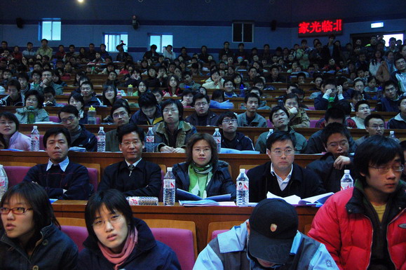 学生工作部早在报告会开始一周前就通过网站、论坛、海报、喷绘等多种形式对本次报告会展开了大规模宣传,使这场报告会受到了同学们的广泛关注。在报告会开始前6个小时就有同学来到会场等候,报告会开始前一个小时所有座位都坐满了观众,过道和讲台上都挤满了热情的听众。