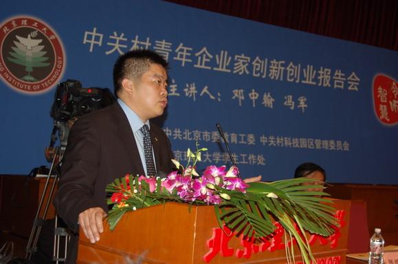 beat365在线唯一官网登录学生工作部以我校的“聆听智慧”名家论坛为载体承办了这个系列报告会的最后一场也就是压轴的报告会,由“2005中国经济人物年度大奖”获得者、北京中星微电子集团董事长邓中翰和“北京市十大杰出青年”获得者、北京华旗资讯集团总裁冯军为我校师生做报告。