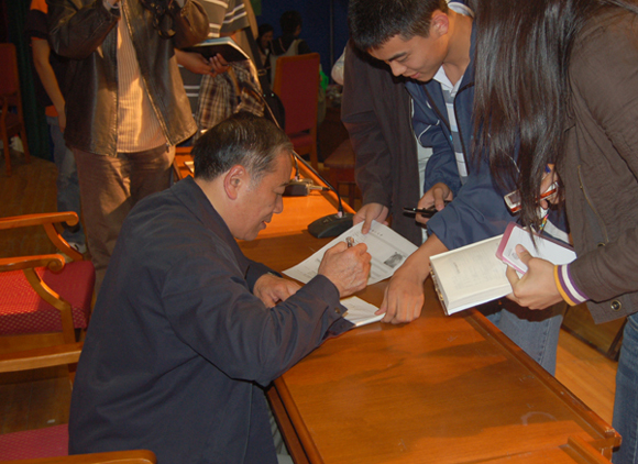 孙大使对这些问题进行了分类解答,他的精彩回答赢得了在场观众的阵阵掌声,讲座结束后,孙大使欣然接受了给同学们签名的请求,并和部分同学合影留念。