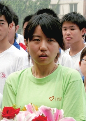 李菊是北师大教育学院2005级本科生,来自北川羌族自治县,在“5·12”特大地震中,她有16位至亲遇难。在灾难面前她坚强面对,积极投入灾后援助工作,积极为家乡重建做准备。她热心公益,积极参加奥运志愿服务工作,工作细致、尽职尽责。在奥运会闭幕式上,作为12名志愿者代表之一,她走进鸟巢,接受新当选的运动员委员会委员献花。