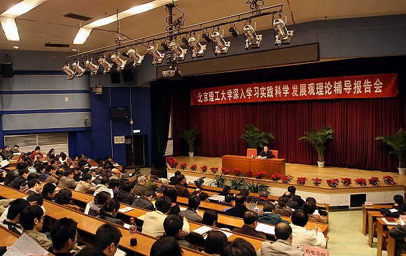我校党委副书记、深入学习实践科学发展观活动领导小组副组长、办公室主任侯光明主持了学习会,党委书记郭大成、全校处级干部以及党支部书记、骨干教师代表、离退休教师代表、学生代表等近500人参加了集中学习。