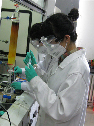 刚上大一时,韩婷和同学张一佳对材料学院董宇平教授的研究课题很感兴趣,想前去学校的实验室参观学习、深入了解。但作为刚入学的“小菜鸟”,她们担心会吃闭门羹。抱着试试看的态度,两人联系了董教授,向他表达了自己的心愿,希望能前往实验室一探究竟。让她们意外的是,董教授想都没想就同意了。在此之前,在两人的心中,实验室是个令人感到神秘的地方,而在2011年9月,这一切将不再神秘。在董老师的引导下,韩婷和张一佳一起走进了她们心中梦想已久的实验室:实验台面整洁如新,仪器摆放整齐有序,看似平常的液体和粉末在试管里瞬间就能发生奇妙的变化,真好!看着这一切,韩婷在心里暗暗想:“这才是我人生的舞台!”