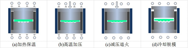 (a)加热保温 (b)高温加压 (c)减压退火 (d)冷却脱模