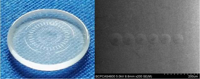研究团队在耐热不锈钢基材表面制备了磷化镍(Ni-P)镀层,在此材料上使用超精密金刚石铣削技术在镀层表面加工出微透镜阵列的方式制备了模压成形用模具,并使用两种粗糙度的低熔点光学玻璃模压制造了光学玻璃微透镜阵列。