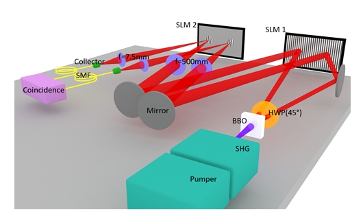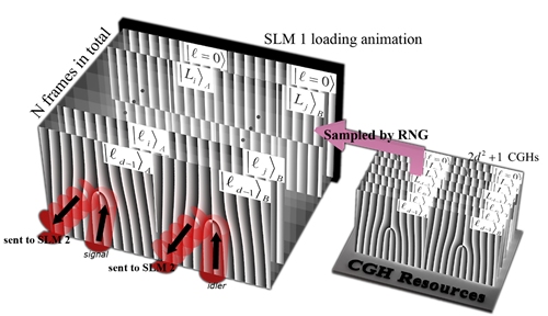光的轨道角动量自由度由于其天然的高维属性,自发现起就被广泛应用于各类高维系统的构建中。在实验中通过光的参量下转换过程产生了轨道角动量光的最大纠缠态