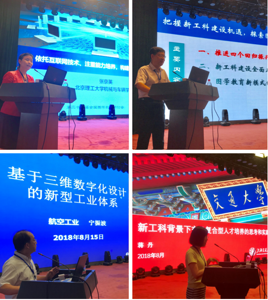 本次研讨会主要围绕“新工科”“双一流”“互联网+”等新理念,探索在信息技术发展新趋势下,如何抓住机遇、应对挑战,寻求图学教育的发展、创新与突破。大会特邀中航工业集团信息技术中心首席顾问宁振波先生作了“基于三维数字化设计的新型工业体系”的报告,阐述新的国际形势下数字化设计对我国新型工业体系的重要作用;图学教育专业委员会主任张京英教授、教育部高等院校工程图学教指副主任刘衍聪教授、图学教育专业委员会副主任蒋丹教授从“互联网+”和“新工科”形势下图学教育的新模式和人才培养目标出发,分析了当前我国高等院校图学教育的新形势和未来发展动向,从纲领、目标到具体实施多个方面诠释了与“新工科”“双一流”接轨的图学教育探索与实践。