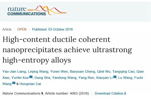 北理工材料学院在《自然·通讯》发表超高强高熵合金研究成果
