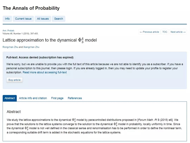 北理工朱蓉禅副教授在《The Annals of Probability》上发表ϕ_3^4动力模型格点逼近的研究成果