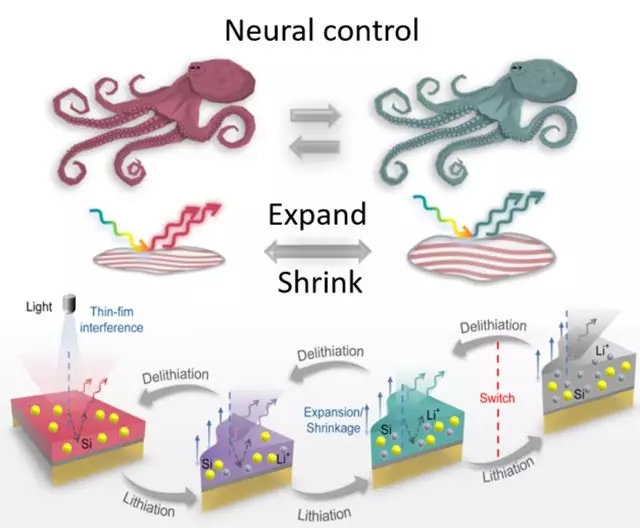 通过模拟章鱼皮肤变色机理设计电化学精确调控变色硅膜