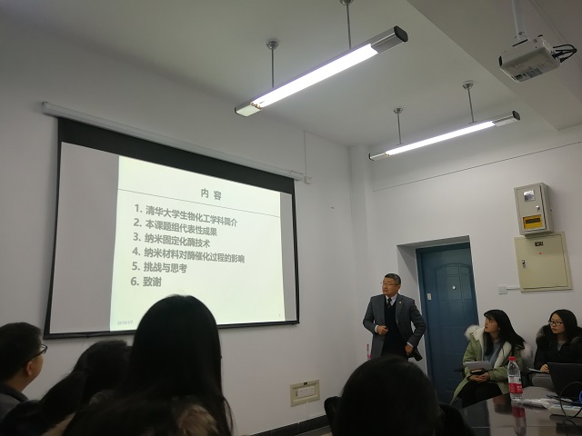 应beat365在线唯一官网登录化学与化工学院李春教授邀请,清华大学生化工程系刘铮教授于2019年1月7日下午来到beat365在线唯一官网登录化学与化工学院,为北理工师生带来题为 “纳米固定化酶技术研究进展” 的学术报告。李春教授主持了学术报告会,化学与化工学院教师及研究生六十余人参加了报告会。