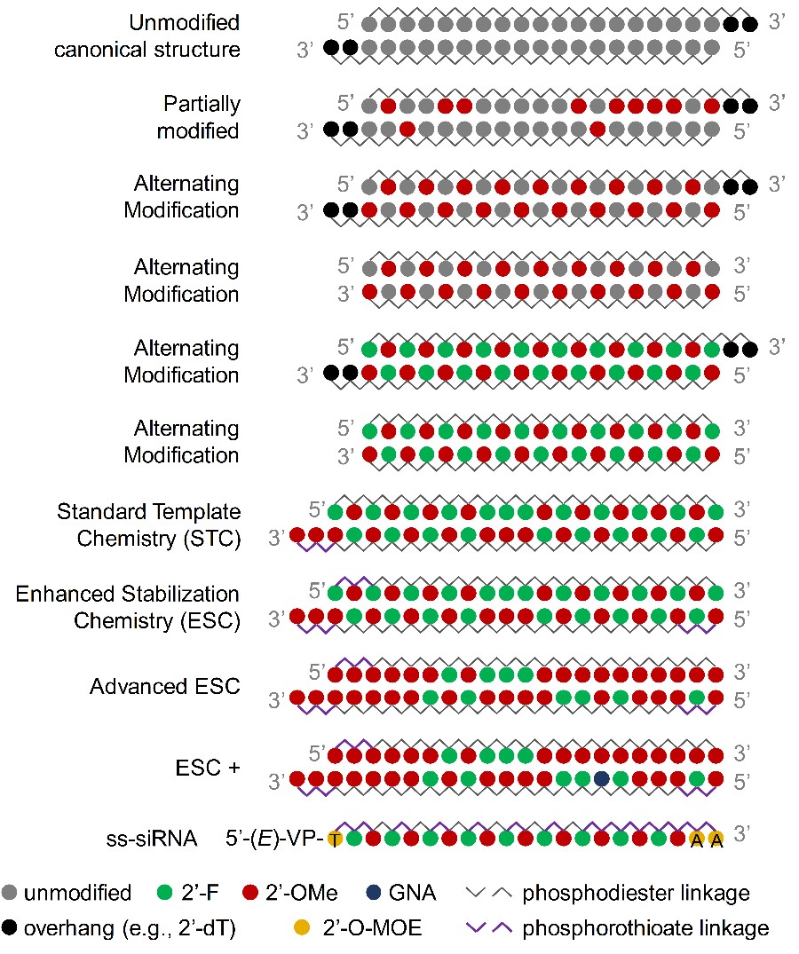 图3 siRNA化学修饰的演化