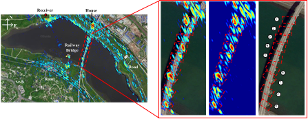在前期的研究成果中,研究团队已解决了系统成像问题(图2),但在三维形变高精度反演、精度评估模型等方面存在理论和算法上的难点问题需要解决。本研究中,研究团队通过引入双基地永久散射点(PS点)技术,针对性的提出多维PS点关联处理思路,融合多星观测数据,解决了三维形变高精度反演问题。进一步,通过拓展传统导航定位精度几何散度因子模型(GDOP),建立了面向基于导航卫星的干涉合成孔径雷达形变反演的新的扩展GDOP模型,解决了该技术的三维形变测量精度准确评估的问题。