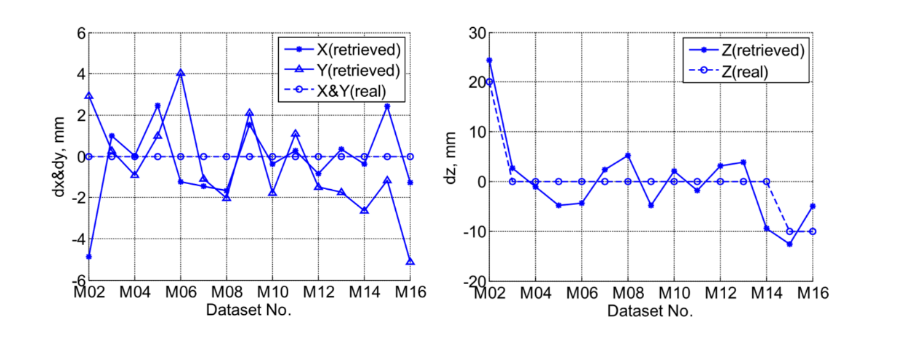 进一步基于转发器的实测三维形变曲线与真实形变曲线一致(图3),验证了所提算法的有效性,实测三维形变精度达到毫米量级,与理论预期吻合。
