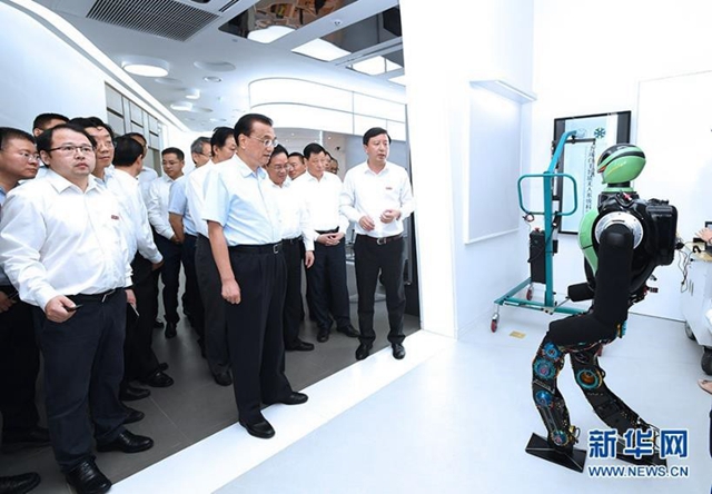 7月23日,beat365在线唯一官网登录研制的仿人机器人在上海张江人工智能岛自主智能无人系统科学中心参展,向中共中央政治局常委、国务院总理李克强等领导进行汇报展示,得到各级领导好评。