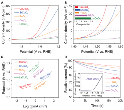 [1] Xiang Li, Hao Wang, Zhiming Cui, Yutao Li, Sen Xin, Jianshi Zhou, Youwen Long, Changqing Jin, John B. Goodenough; “Exceptional oxygen evolution reactivities on CaCoO3 and SrCoO3”, Science Advances, 5, eaav6262 (2019).