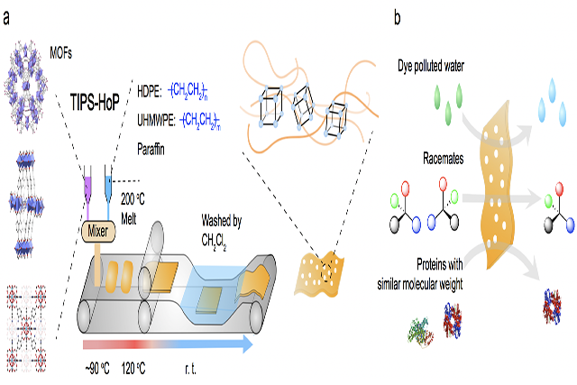 通过TIPS和热压方法(TIPS-HoP)相结合可以实现制备具有良好机械性能的大面积超高功能多孔材料担载量(例如共价有机框架材料、活性炭、分子筛等)的分离膜,具有很好的普适性以及实际生产价值,有望应用于水处理、气体分离、手性分离等多个应用领域。