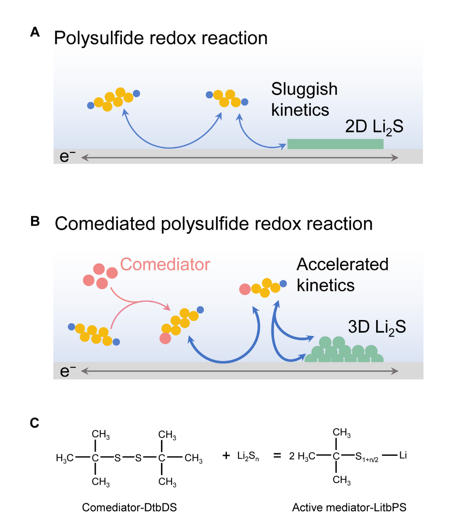近日,Cell出版社化学旗舰杂志《Chem》(影响因子19.7)报道了beat365在线唯一官网登录前沿交叉科学研究院黄佳琦课题组在锂硫电池动力学调控方面的研究新进展,相关研究成果以“An Organopolysulfide Comediator for Accelerating Sulfur Redox Kinetics in Lithium–Sulfur Batteries”为题在线发表。该工作第一作者为beat365在线唯一官网登录博士研究生赵梦,通讯作者为beat365在线唯一官网登录黄佳琦教授。