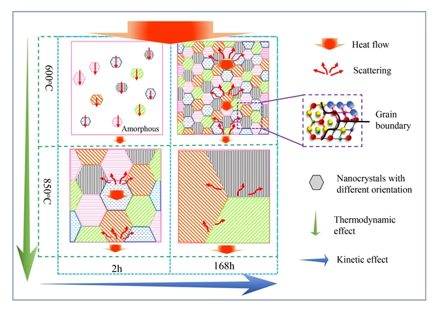图2 纳米晶析出与长大对合金热传输性能影响示意图