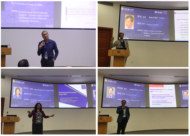 Suresh P. Sethi教授的报告考虑了分散两阶段供应链的两期斯塔克伯格博弈,研究表明平均学习率或学习率变异性增加会导致渠道中更大的效率损失。陈剑教授报告了出现在淘宝网和京东网等各种购物平台的退货政策,通过分析退货保险的信息传递机制证明退货保险可以是高质量商品的有效信号,指出退货保险可以改善消费者剩余并减少产品退货。宋京生教授的报告旨在为原始设备制造商(OEMs)的3D打印提供建议和指导,提出了OEM可以通过出售零件设计而非实体零件来充当知识产权(IP)许可方。赵晓波教授的报告考虑了制造商需要双重采购且面临两个供应商提供数量折扣的供应链场景,提出了一种行为模型,该模型有助于进一步了解群体层面上不同行为驱动因素的重要性。四位特邀嘉宾的精彩主题报告获得了师生们的一致好评。