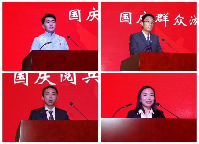 外国语学院2017级本科生、国庆群众游行方阵学生代表史铮,学生工作部副部长、国庆群众游行方阵组织训练负责人徐贵宝,机械与车辆学院青年教师、国庆阅兵某方阵发动机北理工保障队队长崔涛,计算机学院青年教师、国庆联欢活动仿真设计技术负责人黄天羽作精彩发言,分享了参与国庆各项任务的难忘经历,引起全场师生的热烈共鸣,彰显了北理工人“延安根、军工魂”的红色底蕴和浓厚的爱国主义情怀。