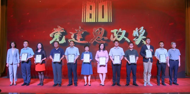 校党委副书记、纪委书记杨志宏,校党委副书记包丽颖为获得2019至2020学年党建思政类奖项的教师代表颁奖