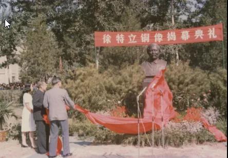 1986年9月,时任中共中央书记处书记习仲勋(中)和北京工业学院院长朱鹤孙(右),共同为在我校中心花园落成的徐特立铜像揭幕,该铜像由自然科学院校友和广大师生共同发起倡议,经中央批准后建立