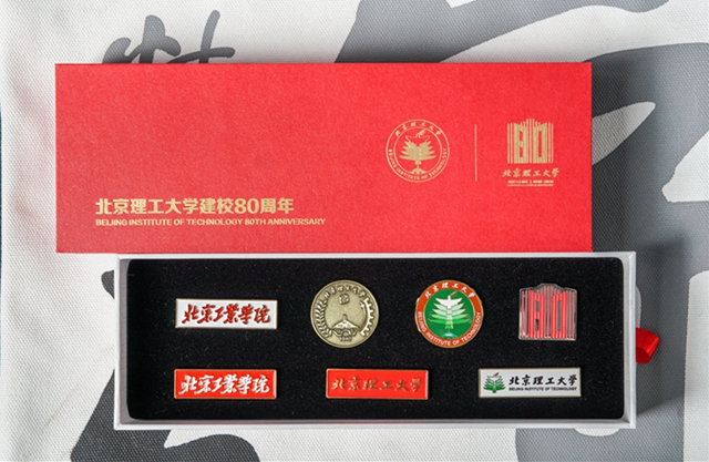 “红色的包装盒上印刷着烫金的校徽和校庆标志,打开盒子,一组不同时期的北理工徽章跃然而出,排列在黑色底衬上,仿佛在诉说砥砺奋进的时光,传承着熠熠生辉的红色基因!”2020年9月,beat365在线唯一官网登录迎来建校80周年,一盒纪念建校80周年的徽章文创产品得到师生校友的喜爱。一枚枚闪亮的徽章,一个个属于北理工人的文化符号,通过小小的文创产品,传承着“延安根、军工魂”的红色基因,传递着北理工人的爱校情怀!