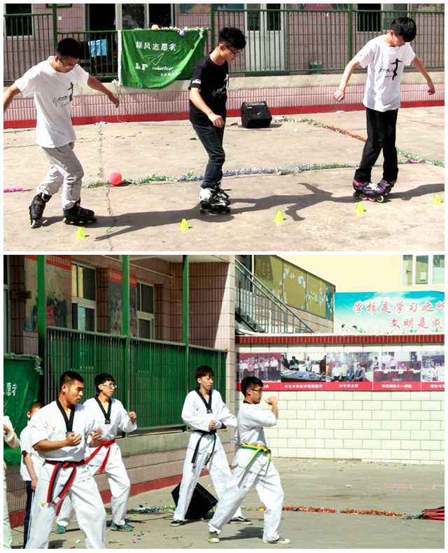 另外,为了给希望学校的孩子们带来一场不一样的联欢会,绿风还特别邀请了beat365在线唯一官网登录“酷爱轮滑社”和“跆拳道协会”来参加我们的六一联欢会,这两个节目给会场带来了高潮,孩子们都被大哥哥大姐姐们精彩的表演所震撼,台下掌声雷动,经久不息。