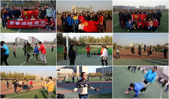 05111331团支部、05111332支部在操场共同开展了“忆童年”主题活动,踢毽子、跳大绳、百米跑,两个支部的同学在汗水中享受运动的快乐,在比赛中体验合作与竞争。04011305团支部举行了“生命不息,运动不止”主题团日活动,跑步热身、跳大绳、羽毛球对抗,由生疏到熟练,从犹豫到热情,同学们在追逐中热情高涨,你追我赶,用笑闹声欢呼声温暖了这个寒冷的冬日。05611302联合05611301支部举办了激动人心的友谊篮球赛,一次次成功的投篮、篮下抢断无不体现出团队的默契配合,中场的女生投篮巾帼不让须眉。