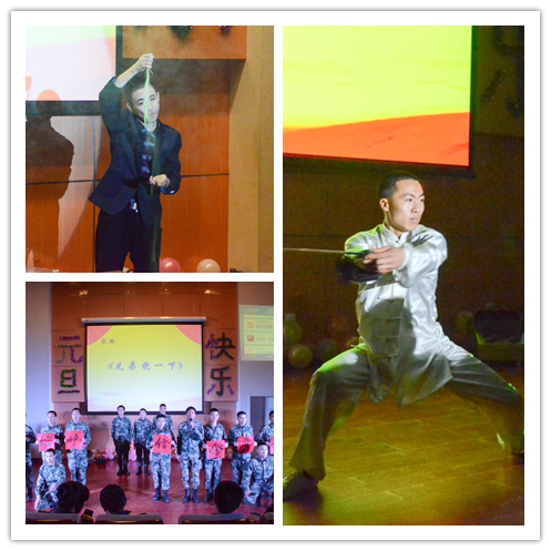 晚会在同学们自编自导自演的短片中拉开了帷幕。随后,在国防生乐队的《红日》中,元旦晚会正式开始。现场不仅有来自国防生大队骨干们的新年祝福,更有精彩纷呈的相声、小品、魔术表演。值得一提的是合唱《兄弟抱一下》与《当穿上军装那一刻》。前者由精武训练队员合作,展现了他们在训练中所结下的浓浓战友情;后者则重现了国防生的日常生活与心路变化,引起场下同学们的共鸣,赢得了热烈的掌声。