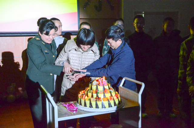 最令人感动与惊喜的,则是晚会预设的“神秘环节”。选培办为18周岁的同学精心准备了蛋糕,既是过一个集体生日,也是举行一场特殊的成人礼。选培办主任尤静和校长助理姚利民亲自为大家切分蛋糕。姚校长助理即兴发表了热情洋溢的讲话,表达了对国防生诚挚的祝福和真心的祝愿,教导同学们要倍加珍惜国防生这个光荣的称号,鼓励大家自立自信自强,成长成人成才!聆听领导们的谆谆教诲,品味领导们的真挚祝福,同学们不仅感受到了无微不至的关怀,更在千里之外的寒冬中感受到了如家一般的温暖。