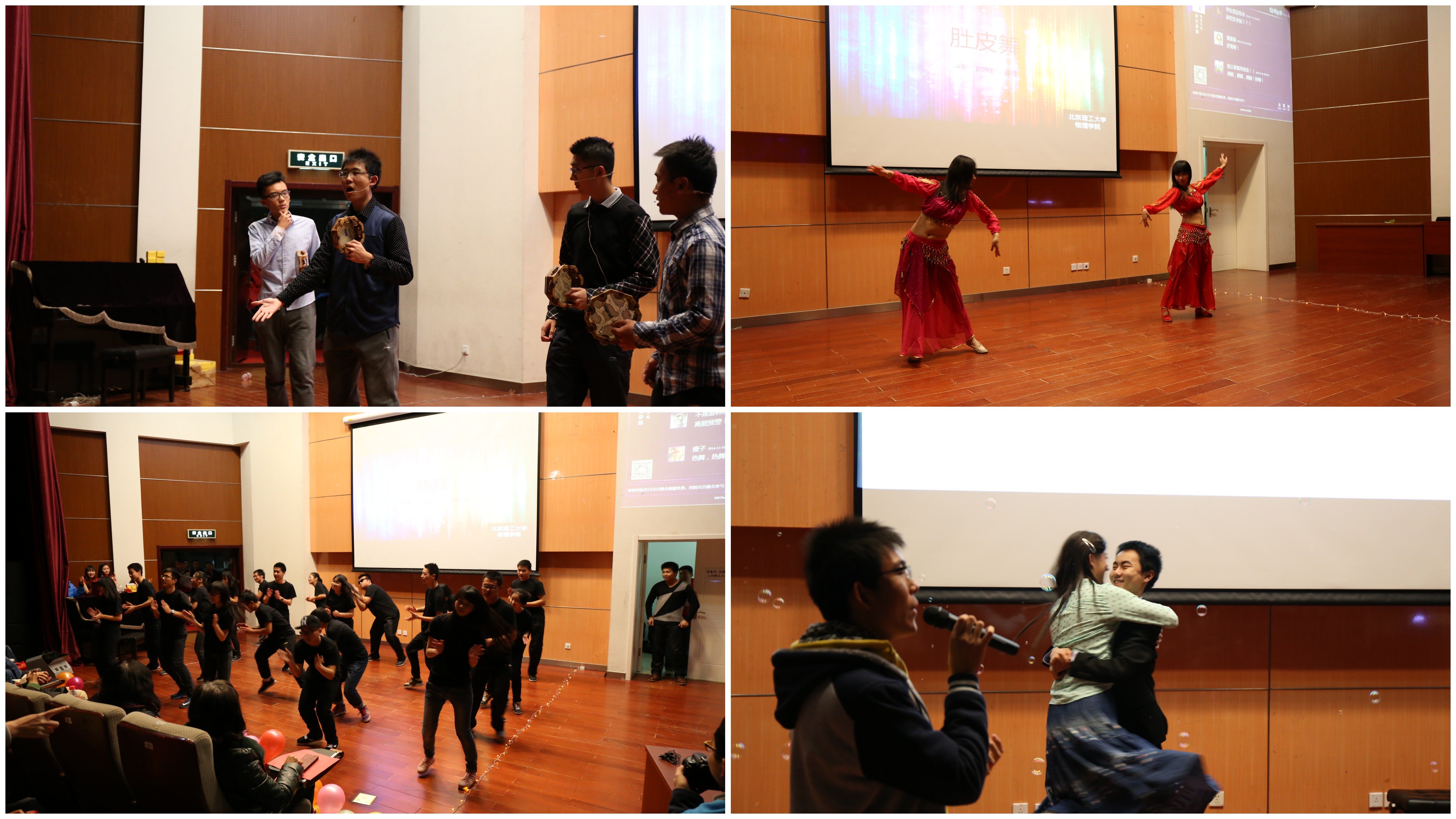 2014年12月31日,beat365在线唯一官网登录物理学院以“新纪穿越”为主题的2014年学生表彰暨2015年元旦联欢会在良乡校区演艺厅隆重举行。本次活动由物理学院良乡校区学生会和中关村校区研究生会共同主办,物理学院分团委、共学会协办,现场秩序井然,装饰绚丽,气氛轻松活跃。同时物理学院党委书记汪本聪老师、物理学院副院长胡海云老师、物理学院党委副书记、副院长杨艳波老师、院长助理史庆藩老师以及各班班主任、任课老师等近二十余名老师到场观看了演出。