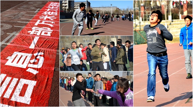 如果说蓝天下的舞动展现了莘莘学子昂扬向上的精神态度,那么万米接力更是表达了他们不服输的劲头。由大一和大二共同组成的万米接力队伍,于12月1日,在南操场拉开奔跑的序幕。这一天虽然寒风刺骨,但是我们看到的不是一个个蜷缩的身影,而是一张张必胜的笑颜。一声哨响,划破天空。每一名队员都如同离弦之箭一般飞奔出去。等待接应的队员已经站好了位置,等待接力棒的到来。每个班级都在为自己的队员呐喊助威,并拍照留念。每一个队伍,每一名成员,每一次接力,都展现了当代大学生所必备的精神品质。万米长跑,由25名同学共同完成,这更加体现出了同学们不服输,团结友爱,共同奋斗优秀精神品质!