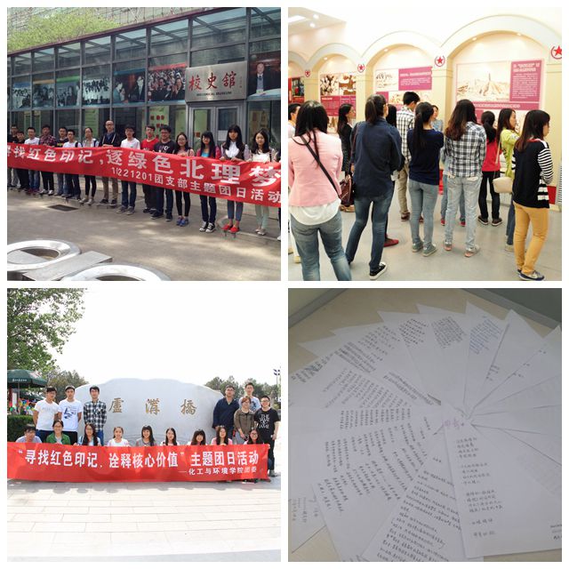 为了更好的了解学校的变迁与发展,部分支部组织支部成员以“我眼中的理工特色”为主题的团日活动,希望青年同学在参观、发现的同时深入了解北理工,领略老一辈理工人艰苦卓绝、努力上进的优秀品质,从而完善自己的价值体系。有的支部以“以史为镜,明晰价值”为主题参观文化故居及历史遗迹,旨在参观的同时去探寻历史真相,丰富个人阅历,以史为鉴,正确面对并评判身边的事件,不盲目跟从。10111201团支部选择参观国家博物馆,感受那段峥嵘岁月的同时加强自身的责任意识。14级硕士第二、第四和第六团支部选择参观卢沟桥抗战遗迹,旨在让支部同学勿忘国耻,明白落后就要挨打的深刻道理,努力上进。