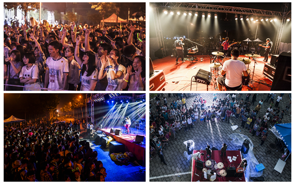 5月17日,时有时无的阵雨并没有浇灭大家的热情,由第十二届艺术节与第九届社团文化节联名举办的“北湖音乐节”在良乡校区北湖南岸热力开唱。经过报名、遴选,活跃在北理工舞台上的“北理轰炸机”、“山海鲸”、“Adobe”以及来自北京科技大学的“娃翻天”四支校园乐队在主舞台“北湖舞台”上演唱了诸多原创及改编作品。而在一侧的“青年力量”舞台上,更多独立校园音乐人及乐队藉此展示了他们惊人的才华。晚上19:00北湖音乐节进入狂欢时段,在《中国好歌曲》节目及全国各大音乐节大放异彩的“A公馆”乐队,在国际摇滚界拥有相当影响力的摇滚音乐人边远先后登台。最后压轴登场的是目前活跃在国内的一线乐队“Carsick Cars”,当台下听众得知这支著名的乐队成立于十年前的北理工校园,乐队创始人及领袖张守望是北理工2005级的学长时,纷纷报以欢呼与尖叫,整个北湖湖畔被音乐点燃。