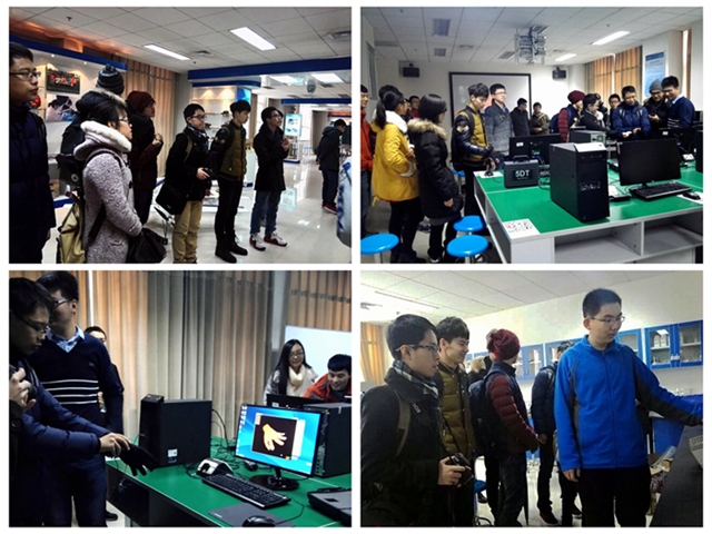 在引导员带领下,我们邀请华电学生参观团前往beat365在线唯一官网登录基础教育学院大学生科技创新实践基地进行参观,在基地展厅为代表团展示了近几年来低年级学生科技创新成果;在机械加工坊,讲解员介绍了具有高精度雕刻能力的激光雕刻机的使用情况;在电子坊,代表团了解了电子信息类大创的基本情况及科创成果;在3D创意坊,华电的同学们体验了数据手套和3D电影,并在机电控制坊观看了“超级无敌仿真模拟机器人”的表演,最后在生态坊观看了各种“高大上”的生化类仪器。
